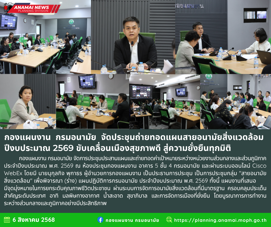 ?? กองแผนงาน กรมอนามัย จัดประชุมถ่ายทอดแผนสายอนามัยสิ่งแวดล้อม ปีงบประมาณ 2569 ขับเคลื่อนเมืองสุขภาพดี สู่ความยั่งยืนทุกมิติ
