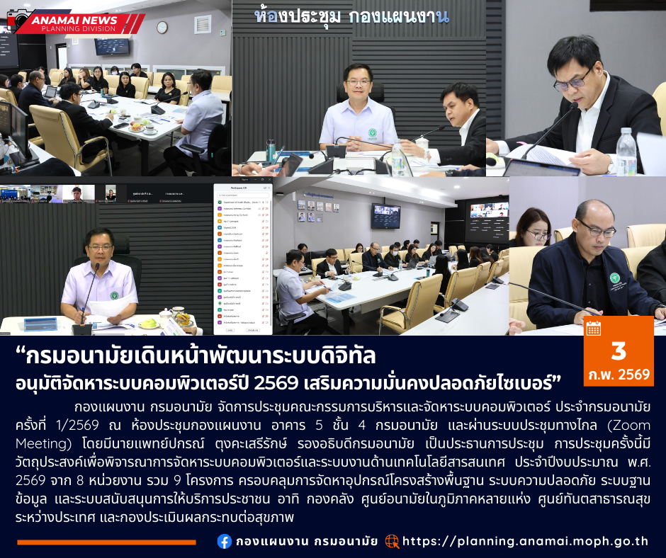 รมอนามัยเดินหน้าพัฒนาระบบดิจิทัล อนุมัติจัดหาระบบคอมพิวเตอร์ปี 2569 เสริมความมั่นคงปลอดภัยไซเบอร์