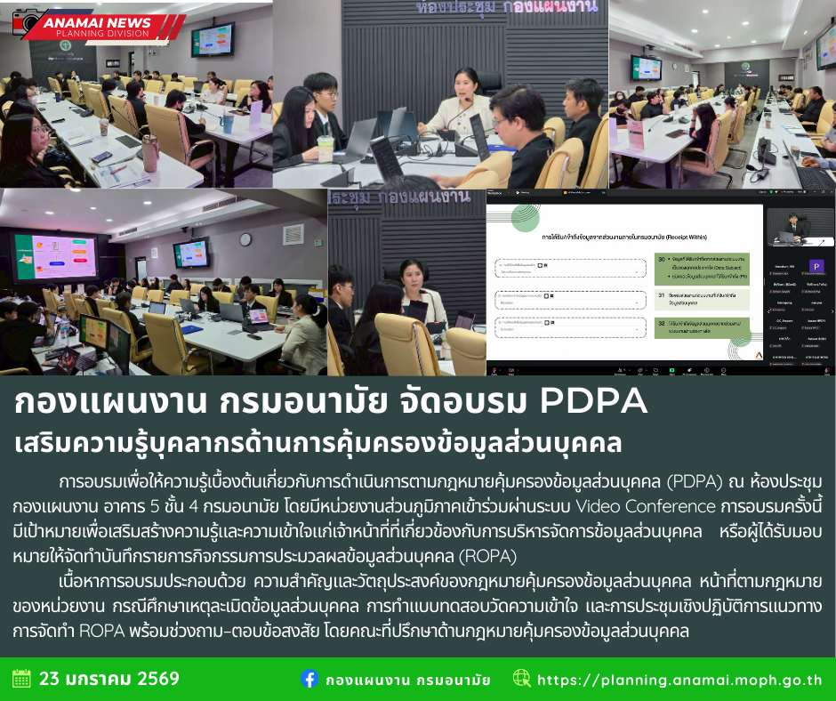 องแผนงานอบรม PDPA เสริมความรู้บุคลากรด้านการคุ้มครองข้อมูลส่วนบุคคล