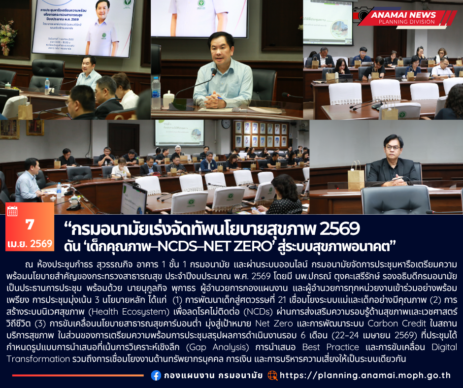 กรมอนามัยเร่งจัดทัพนโยบายสุขภาพ 2569 ดัน ‘เด็กคุณภาพ–NCDs–Net Zero’ สู่ระบบสุขภาพอนาคต”